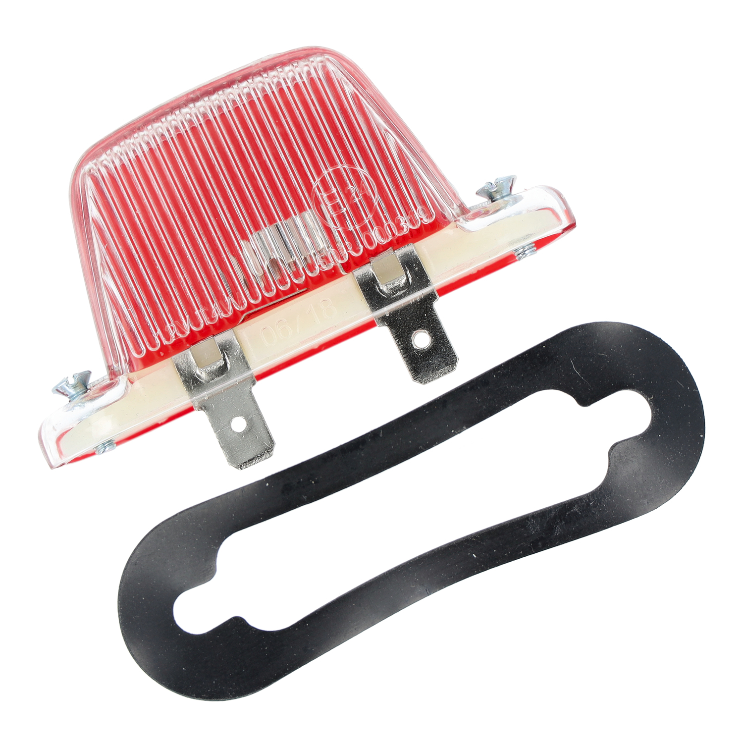 Parkleuchte ist mit den zwei Linsensenkschrauben und der Gummiunterlage ausgestattet und für 12V-Leuchtmittel zugelassen.